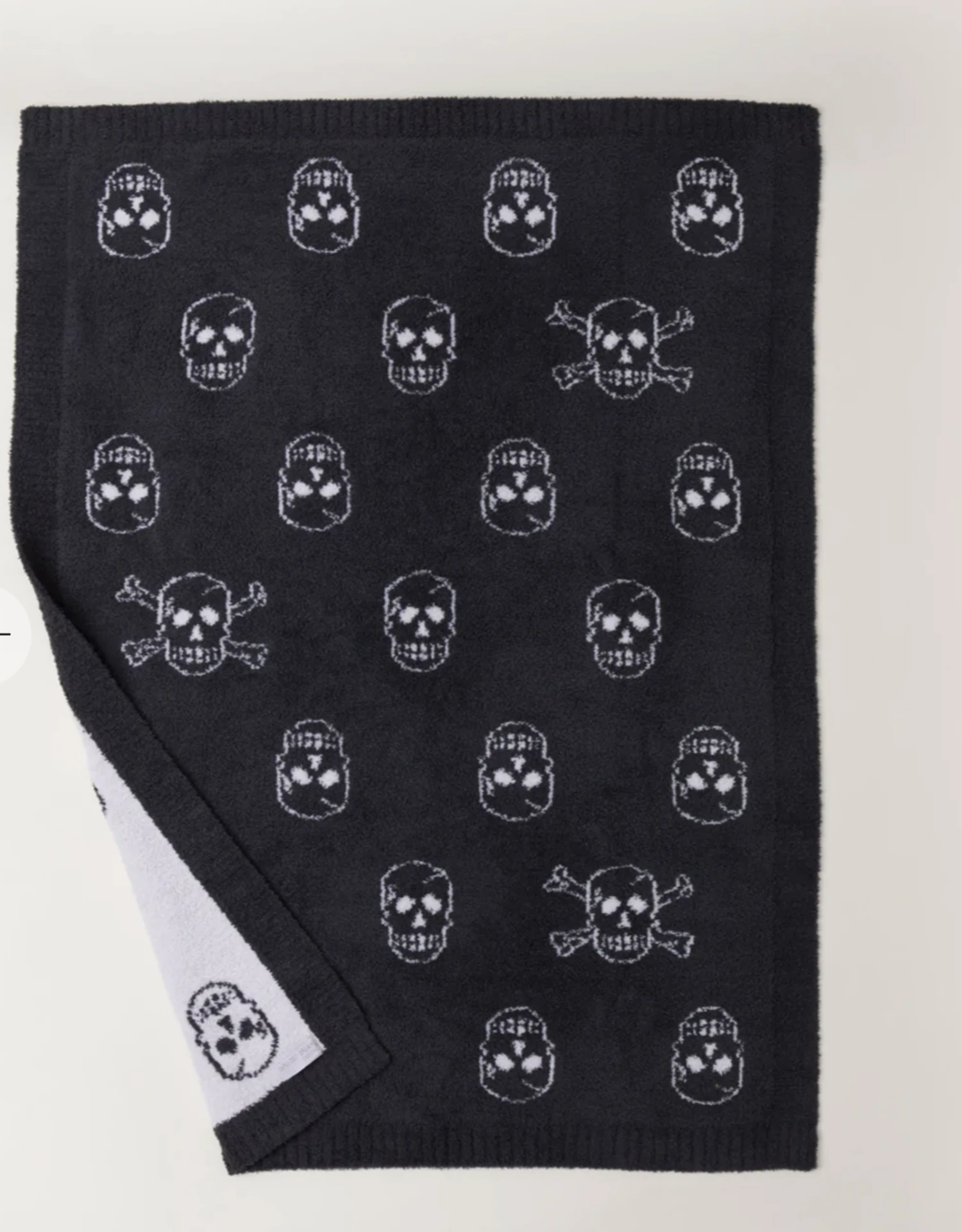 Our signature stroller blanket gets an edgy update with this cozy and cool two tone jacquard knit skull pattern with luxurious rib trim.
